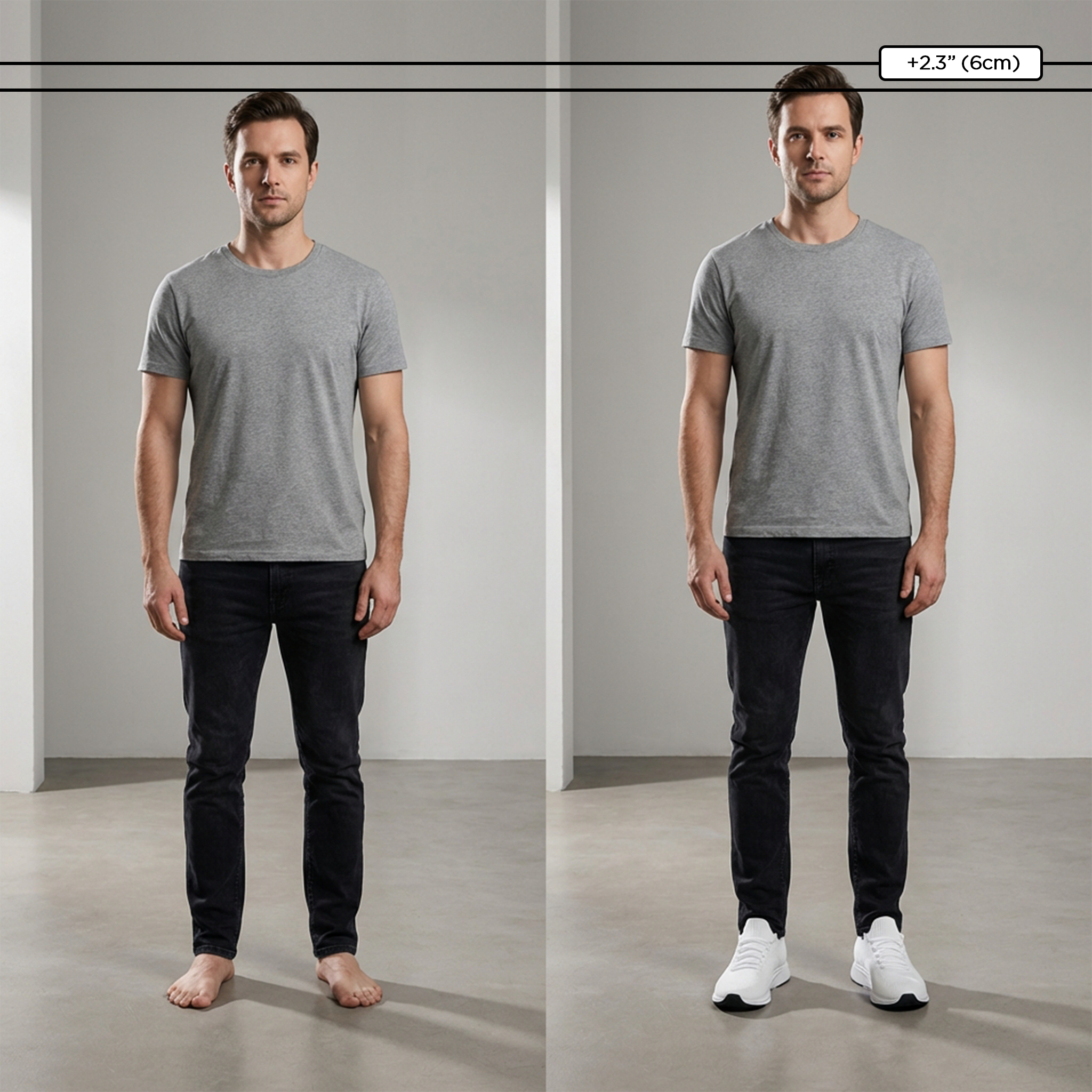 Ob im Meeting oder beim Ausgehen - eine dezente Größenerhöhung kann einen großen Unterschied machen. Gehen Sie aufrechter, fühlen Sie sich sicherer und bewegen Sie sich mühelos durch den Tag.