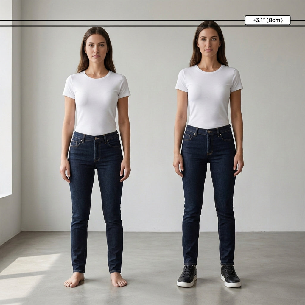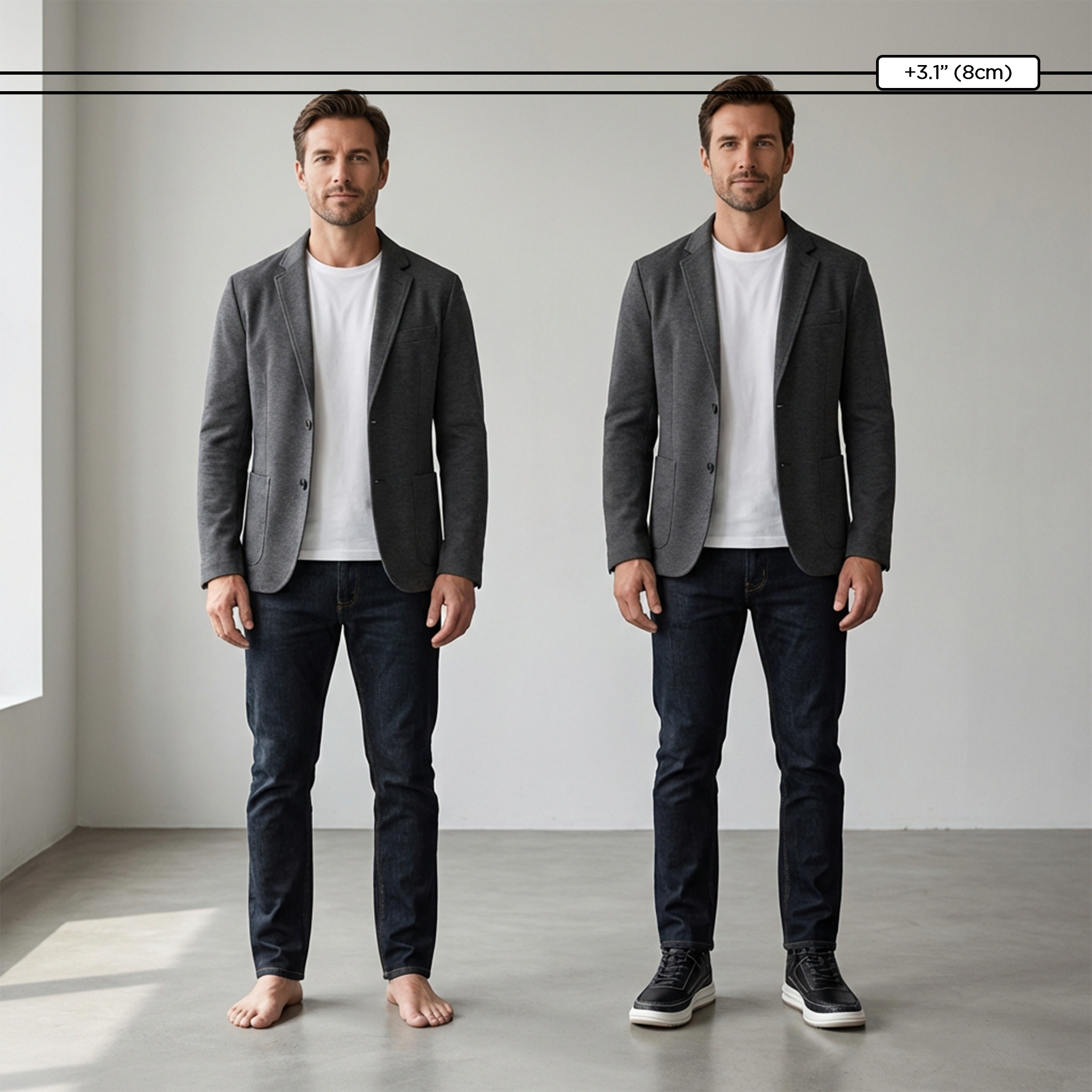 Ob im Meeting oder beim Ausgehen - eine dezente Größenerhöhung kann einen großen Unterschied machen. Gehen Sie aufrechter, fühlen Sie sich sicherer und bewegen Sie sich mühelos durch den Tag.