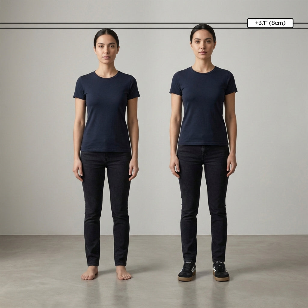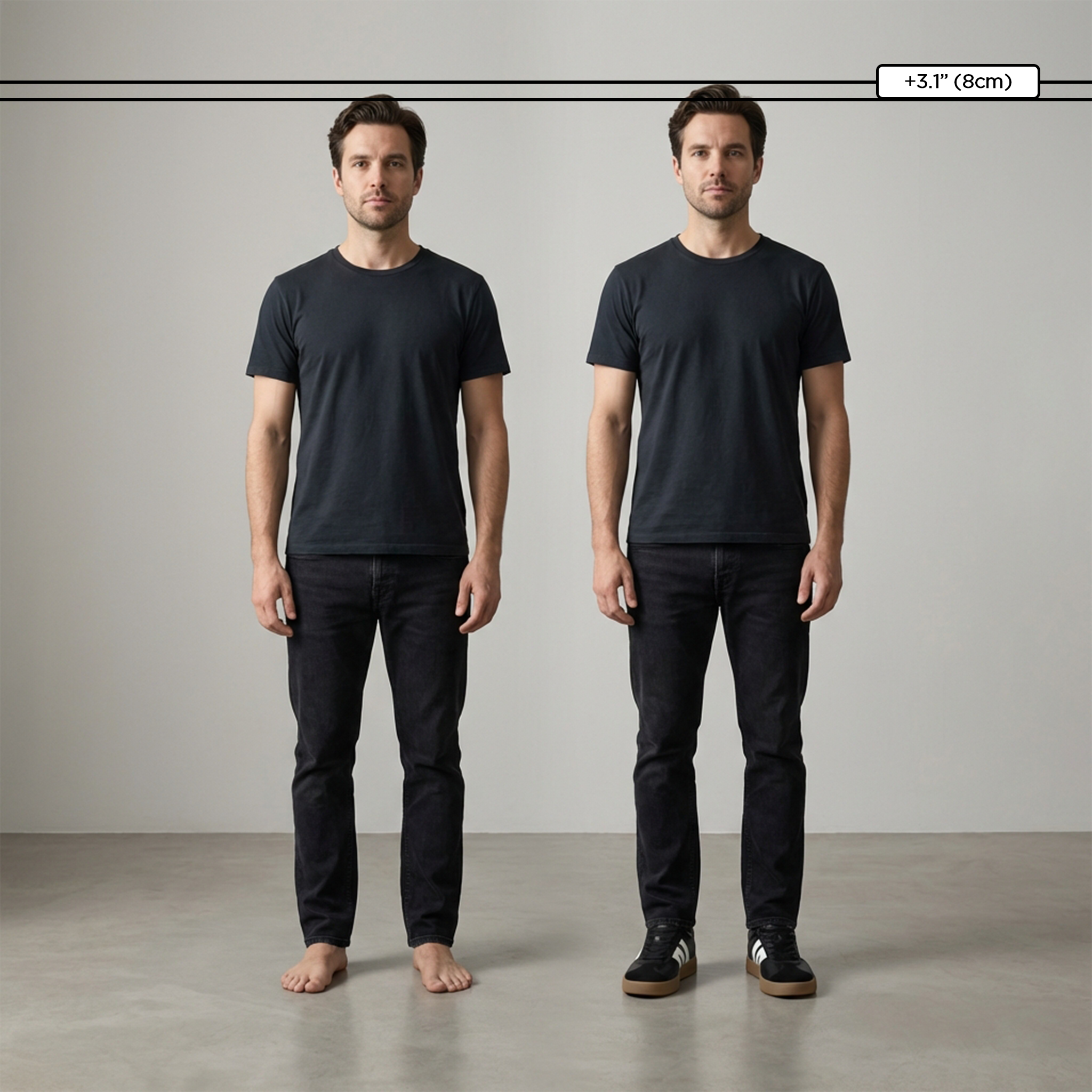 Ob im Meeting oder beim Ausgehen - eine dezente Größenerhöhung kann einen großen Unterschied machen. Gehen Sie aufrechter, fühlen Sie sich sicherer und bewegen Sie sich mühelos durch den Tag.