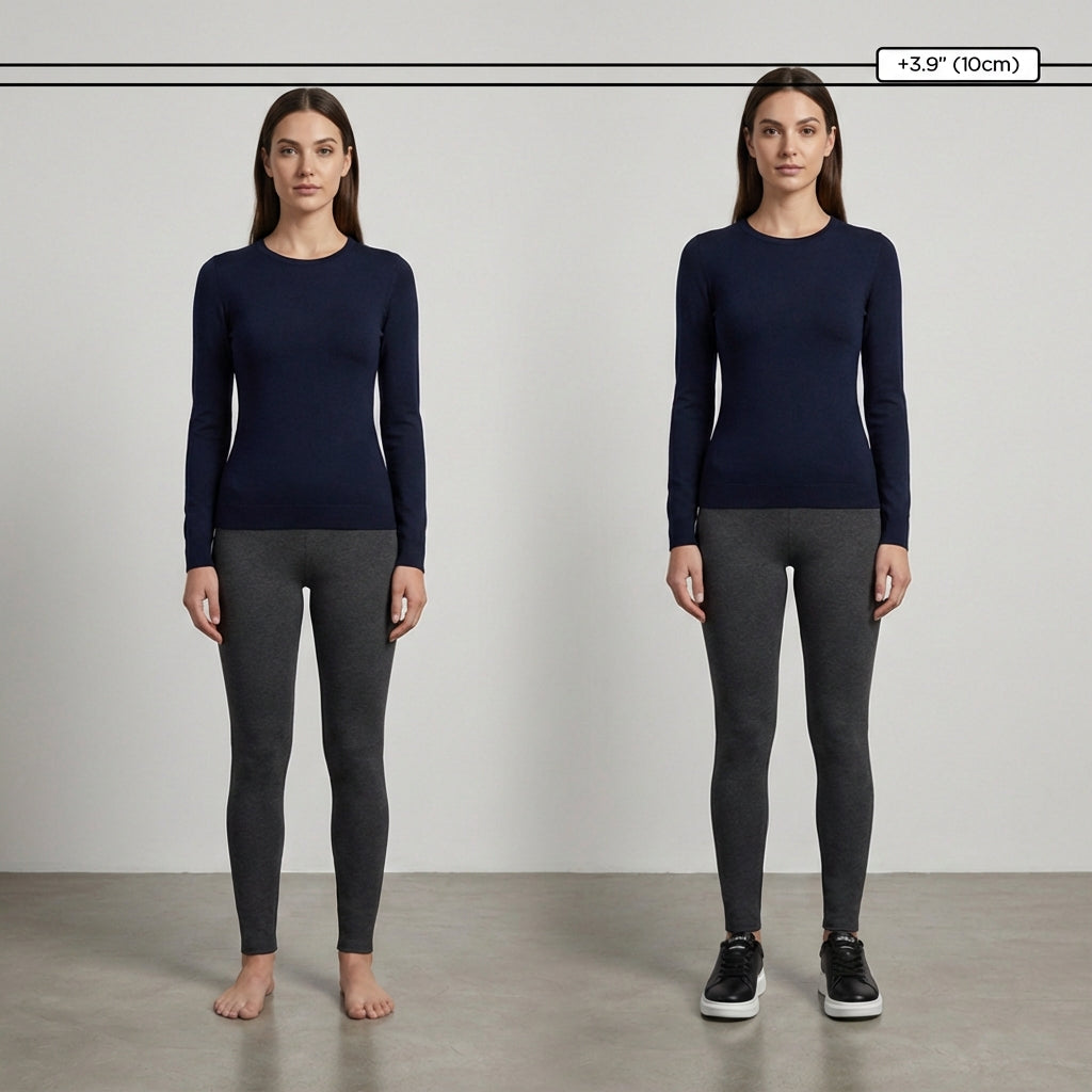 Ob im Meeting oder beim Ausgehen - eine dezente Größenerhöhung kann einen großen Unterschied machen. Gehen Sie aufrechter, fühlen Sie sich sicherer und bewegen Sie sich mühelos durch den Tag.