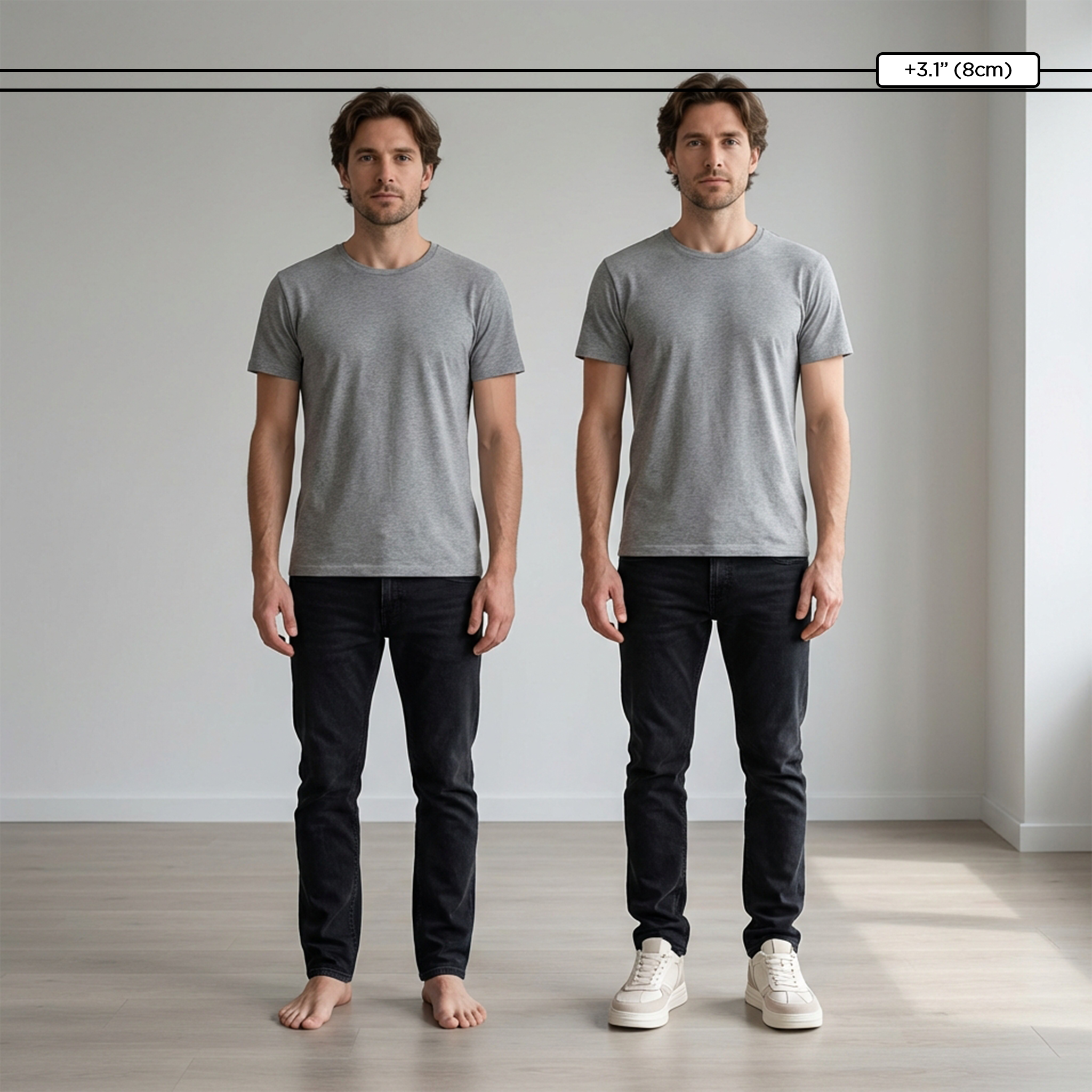 Ob im Meeting oder beim Ausgehen - eine dezente Größenerhöhung kann einen großen Unterschied machen. Gehen Sie aufrechter, fühlen Sie sich sicherer und bewegen Sie sich mühelos durch den Tag.