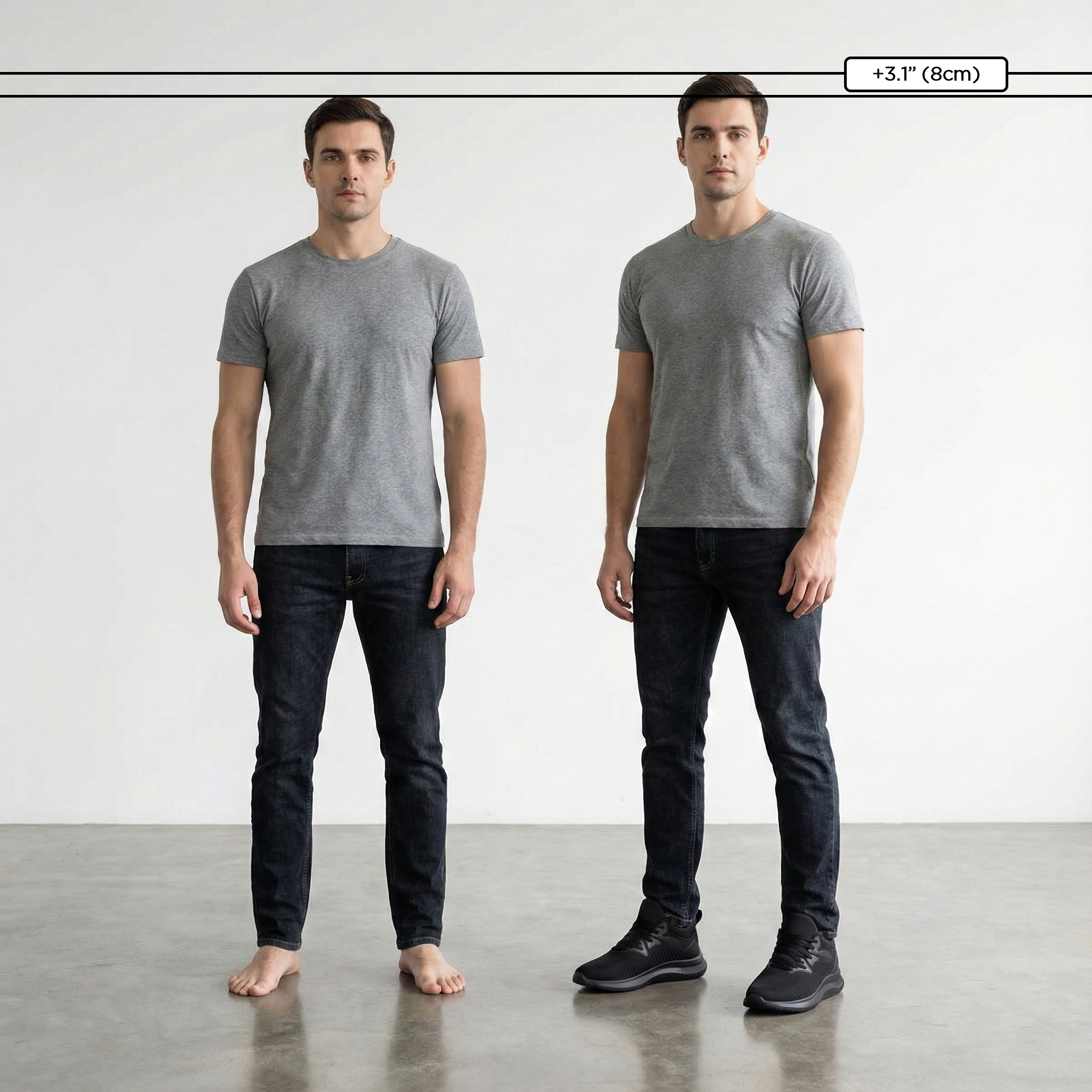 Ob im Meeting oder beim Ausgehen - eine dezente Größenerhöhung kann einen großen Unterschied machen. Gehen Sie aufrechter, fühlen Sie sich sicherer und bewegen Sie sich mühelos durch den Tag.