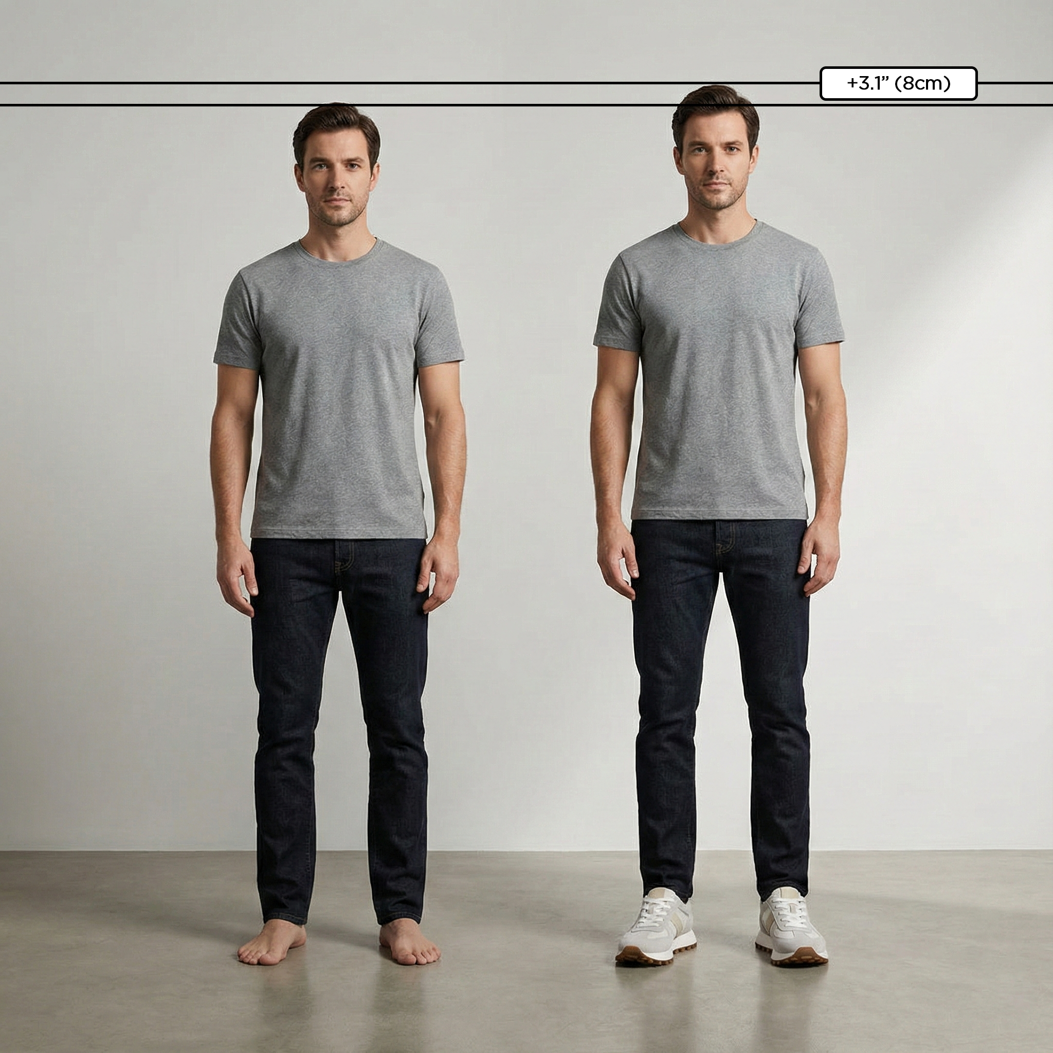 Ob im Meeting oder beim Ausgehen - eine dezente Größenerhöhung kann einen großen Unterschied machen. Gehen Sie aufrechter, fühlen Sie sich sicherer und bewegen Sie sich mühelos durch den Tag.