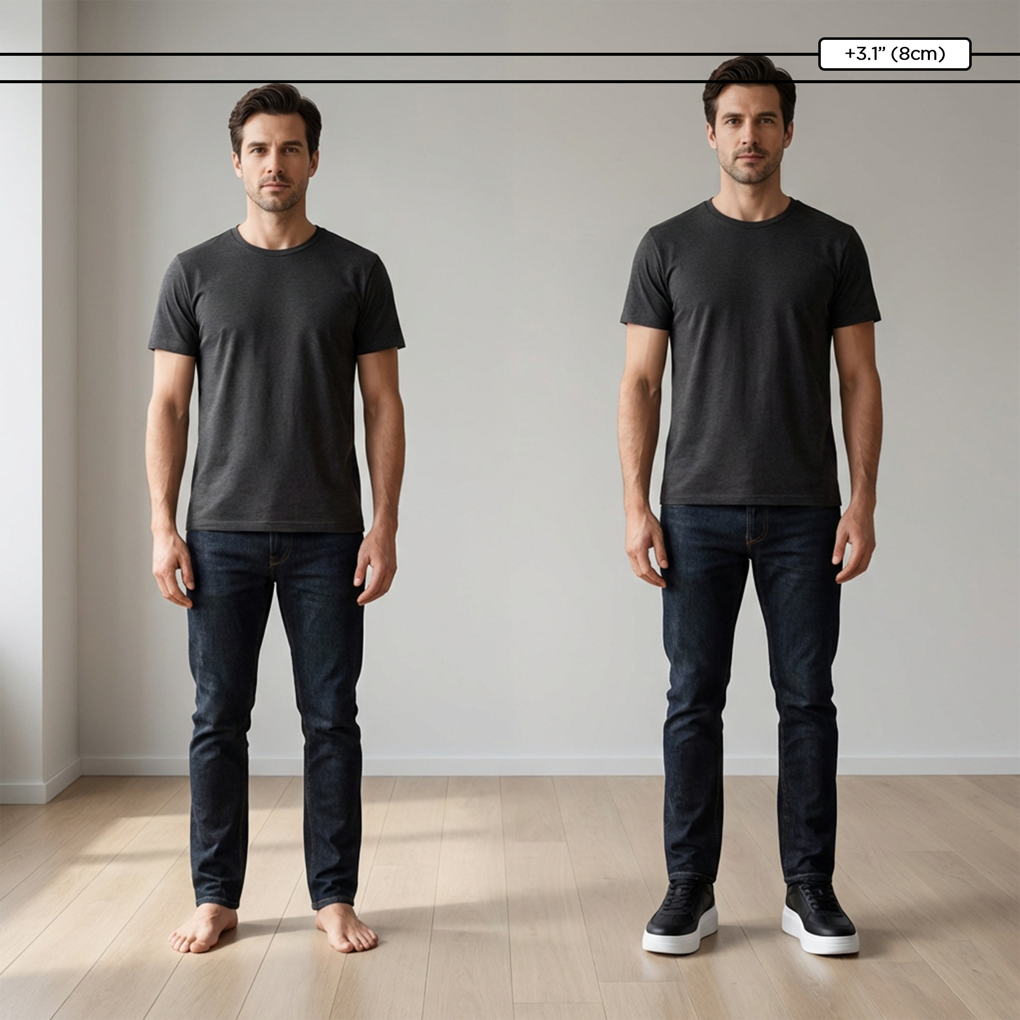 Ob im Meeting oder beim Ausgehen - eine dezente Größenerhöhung kann einen großen Unterschied machen. Gehen Sie aufrechter, fühlen Sie sich sicherer und bewegen Sie sich mühelos durch den Tag.
