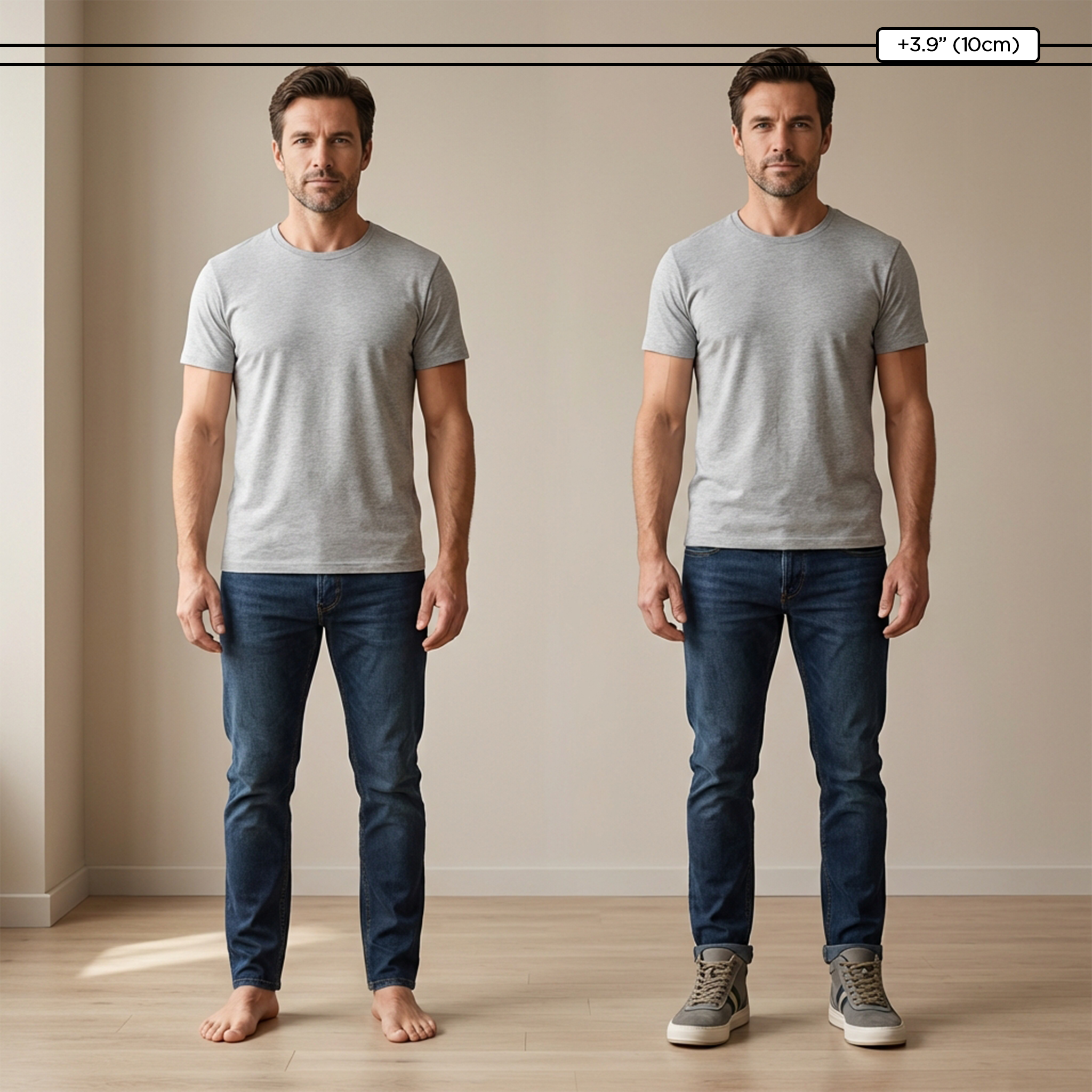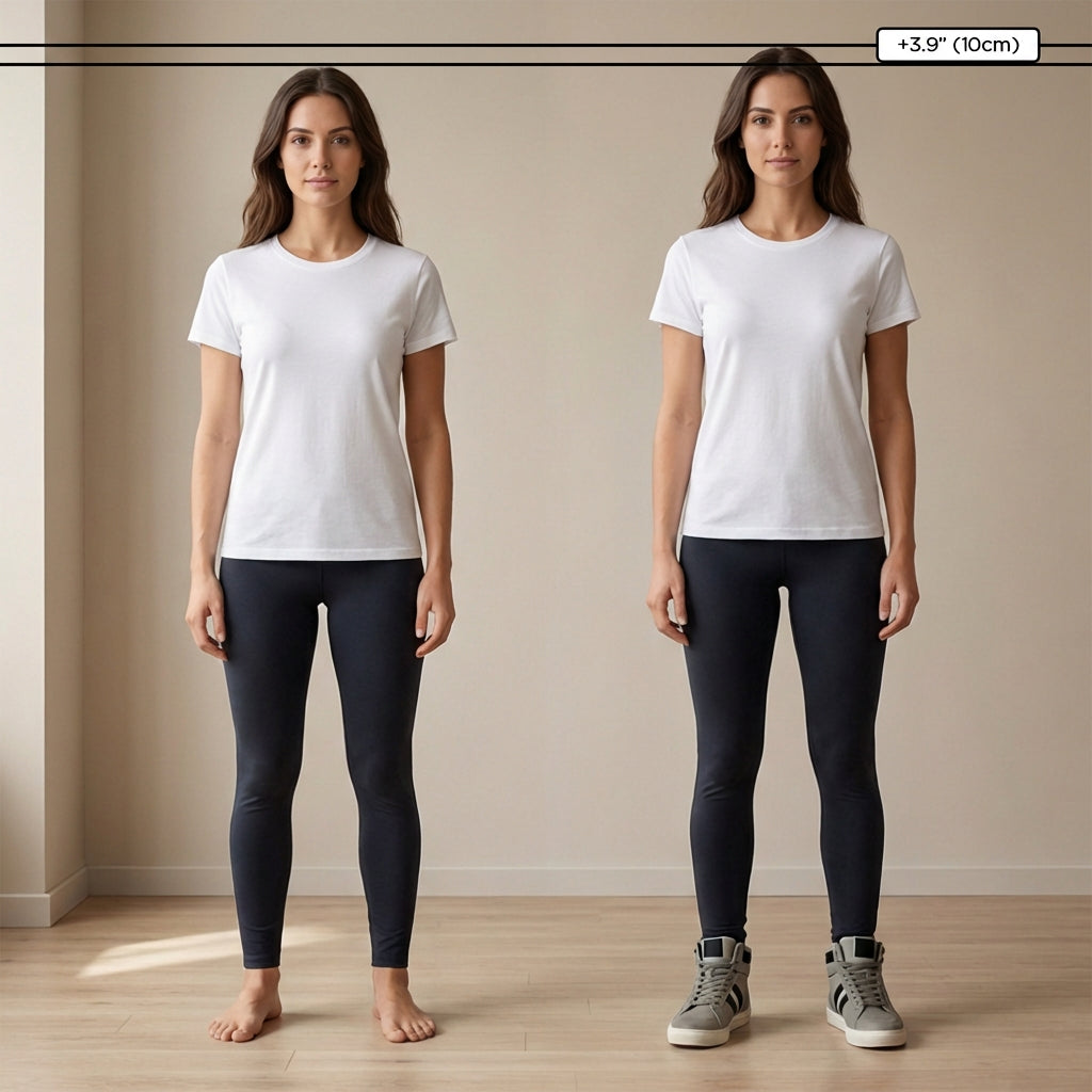 Ob im Meeting oder beim Ausgehen - eine dezente Größenerhöhung kann einen großen Unterschied machen. Gehen Sie aufrechter, fühlen Sie sich sicherer und bewegen Sie sich mühelos durch den Tag.