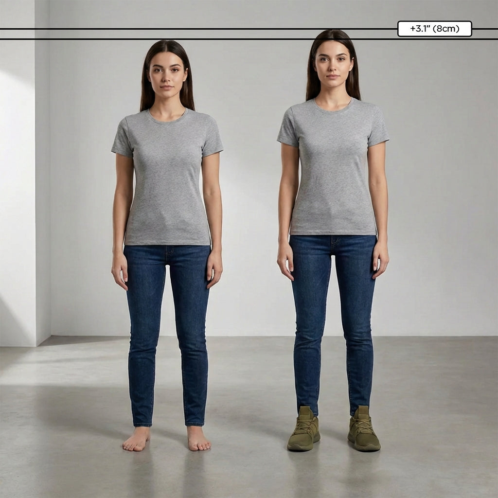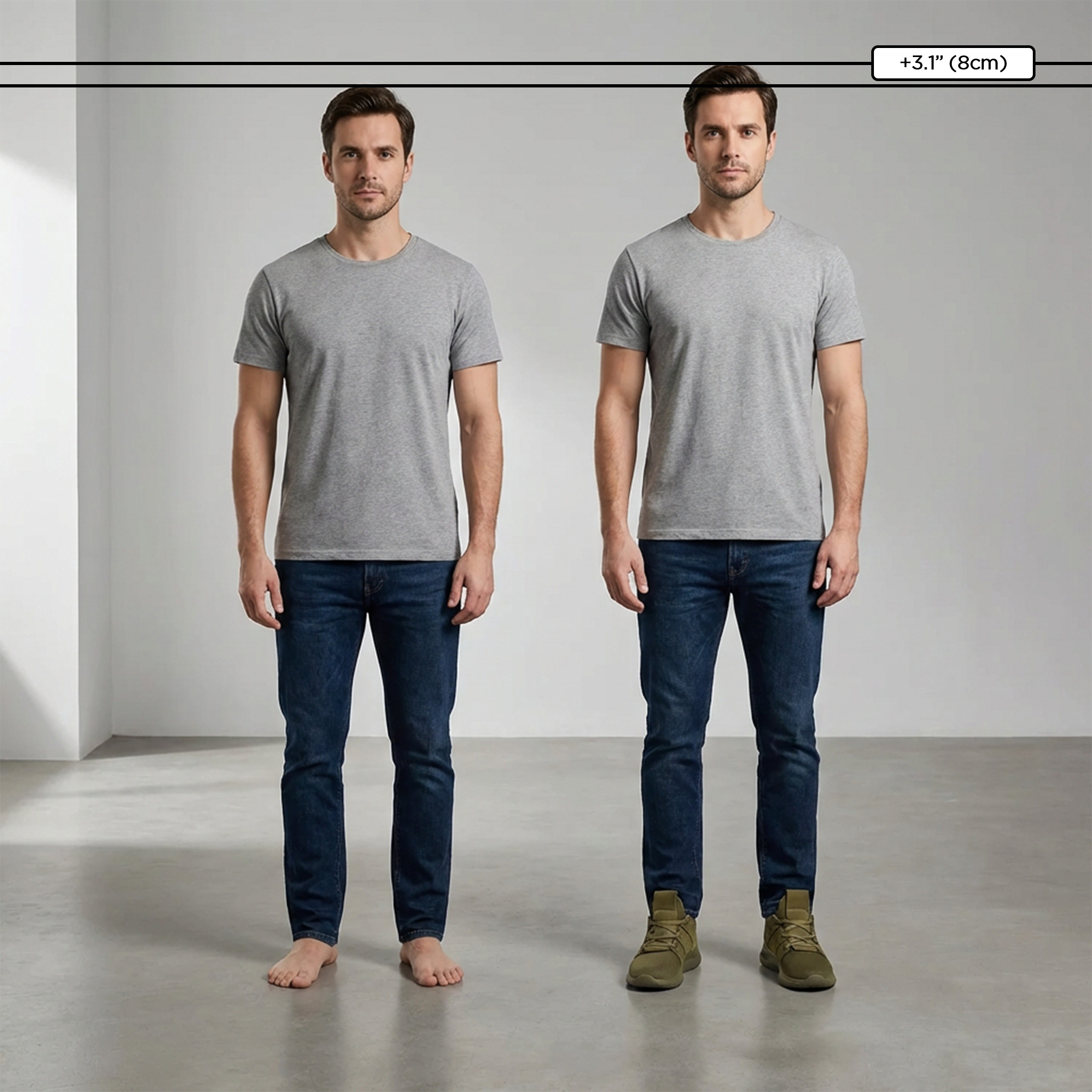 Whether in a meeting or out on the town, a subtle increase in height can make a big difference. Walk taller, feel more confident, and move effortlessly through the day.