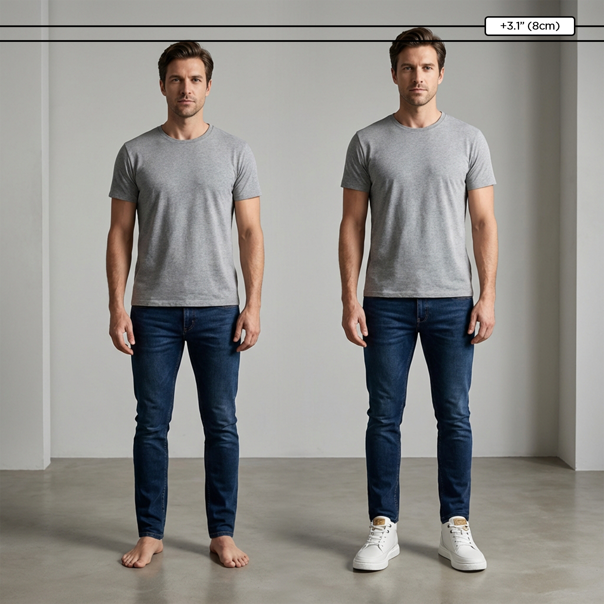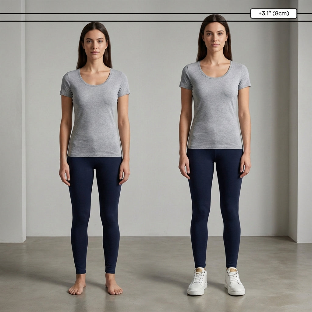 Ob im Meeting oder beim Ausgehen - eine dezente Größenerhöhung kann einen großen Unterschied machen. Gehen Sie aufrechter, fühlen Sie sich sicherer und bewegen Sie sich mühelos durch den Tag.