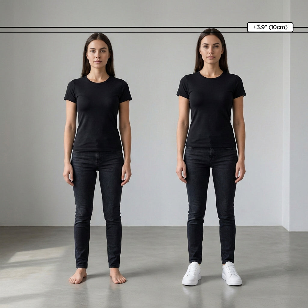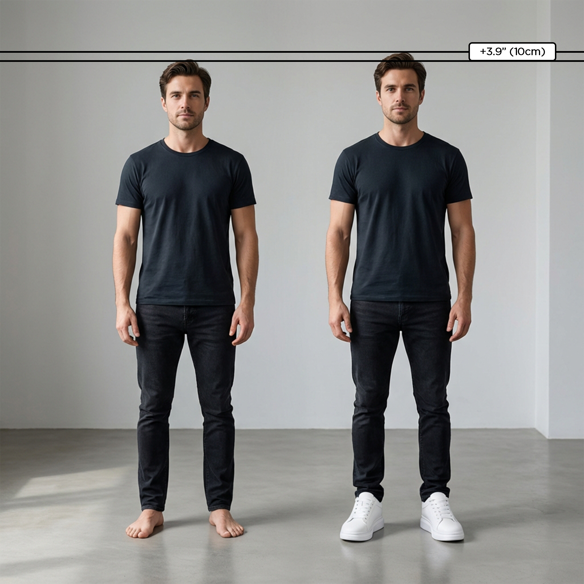 Ob im Meeting oder beim Ausgehen - eine dezente Größenerhöhung kann einen großen Unterschied machen. Gehen Sie aufrechter, fühlen Sie sich sicherer und bewegen Sie sich mühelos durch den Tag.