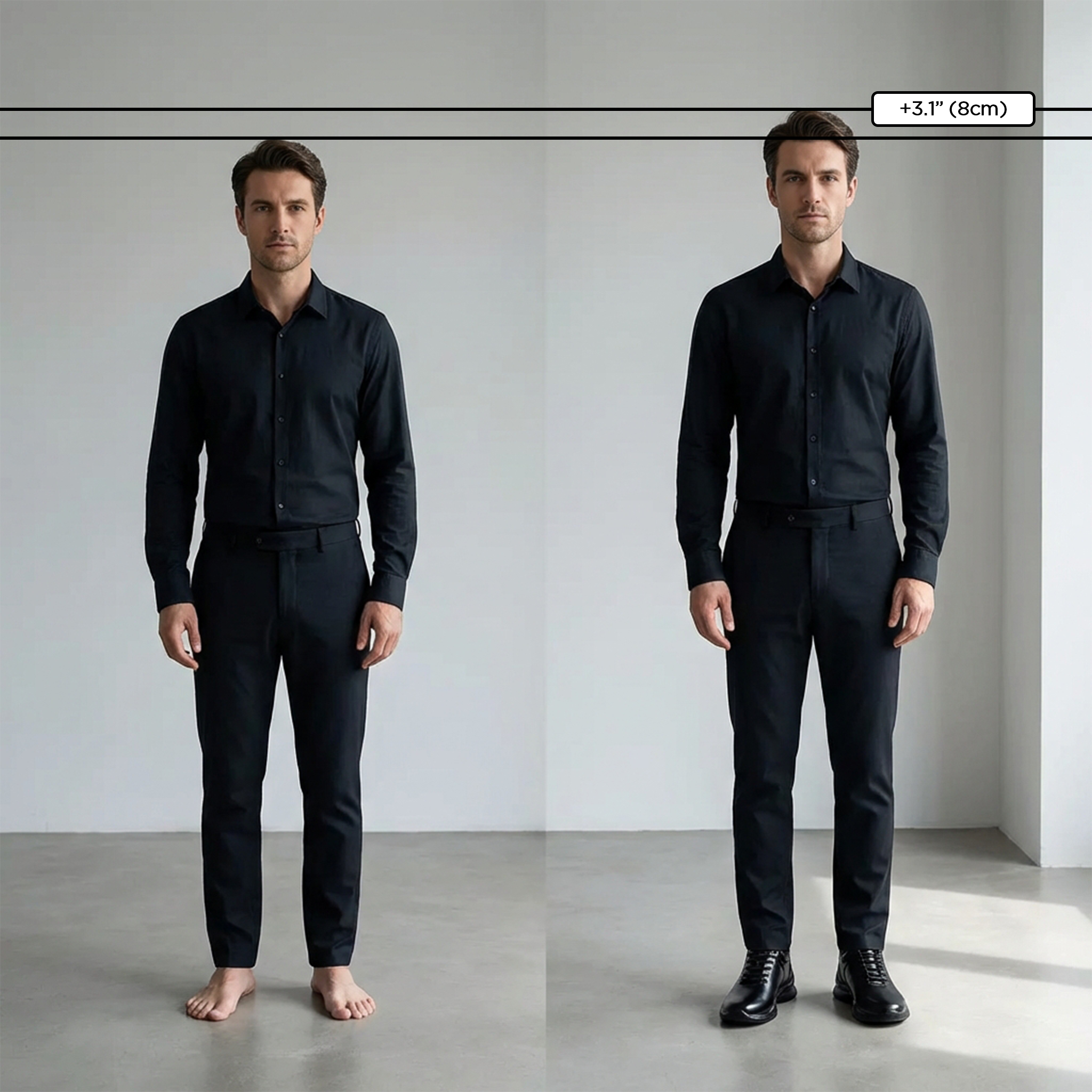 Que ce soit en réunion ou en ville, gagner légèrement en stature peut faire toute la différence. Marchez plus droit, gagnez en confiance et déplacez-vous avec aisance tout au long de la journée.