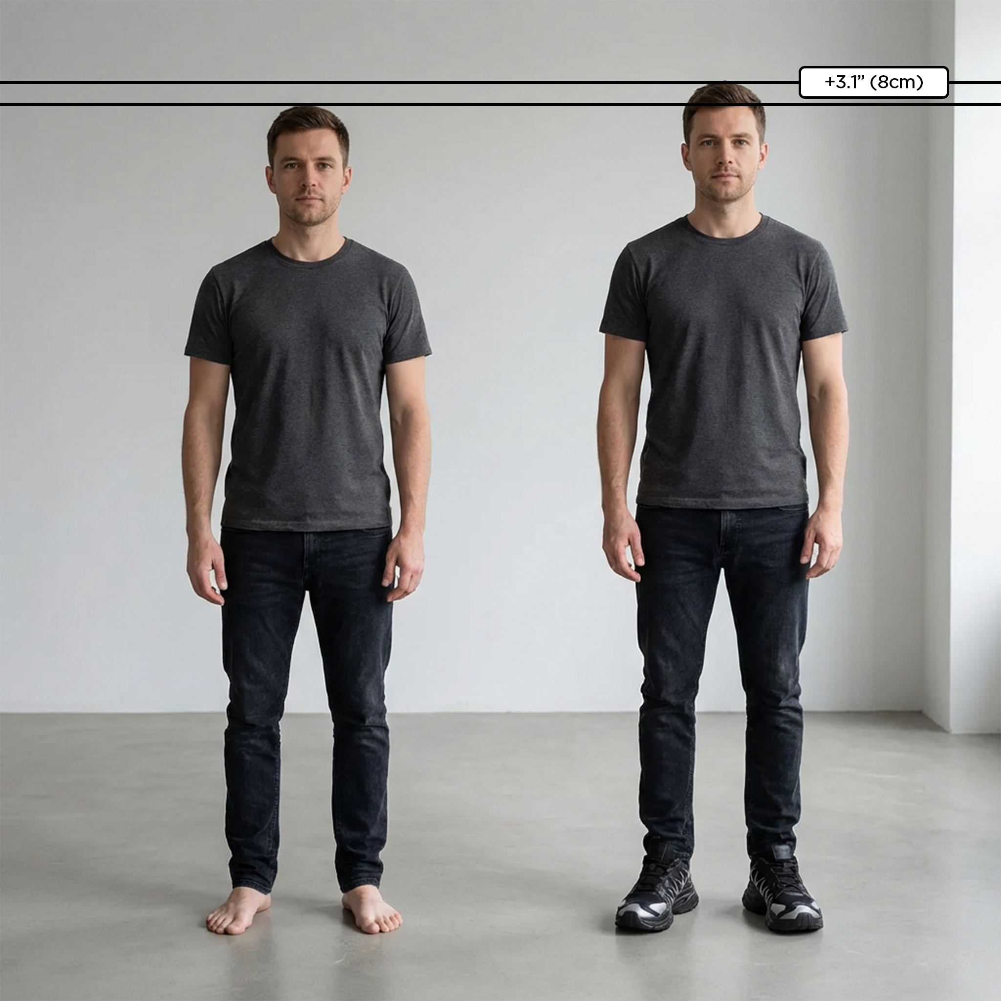 Profitez d'un gain de taille discret allant jusqu'à 8 cm . Ce gain est totalement invisible : vous seul le remarquerez .