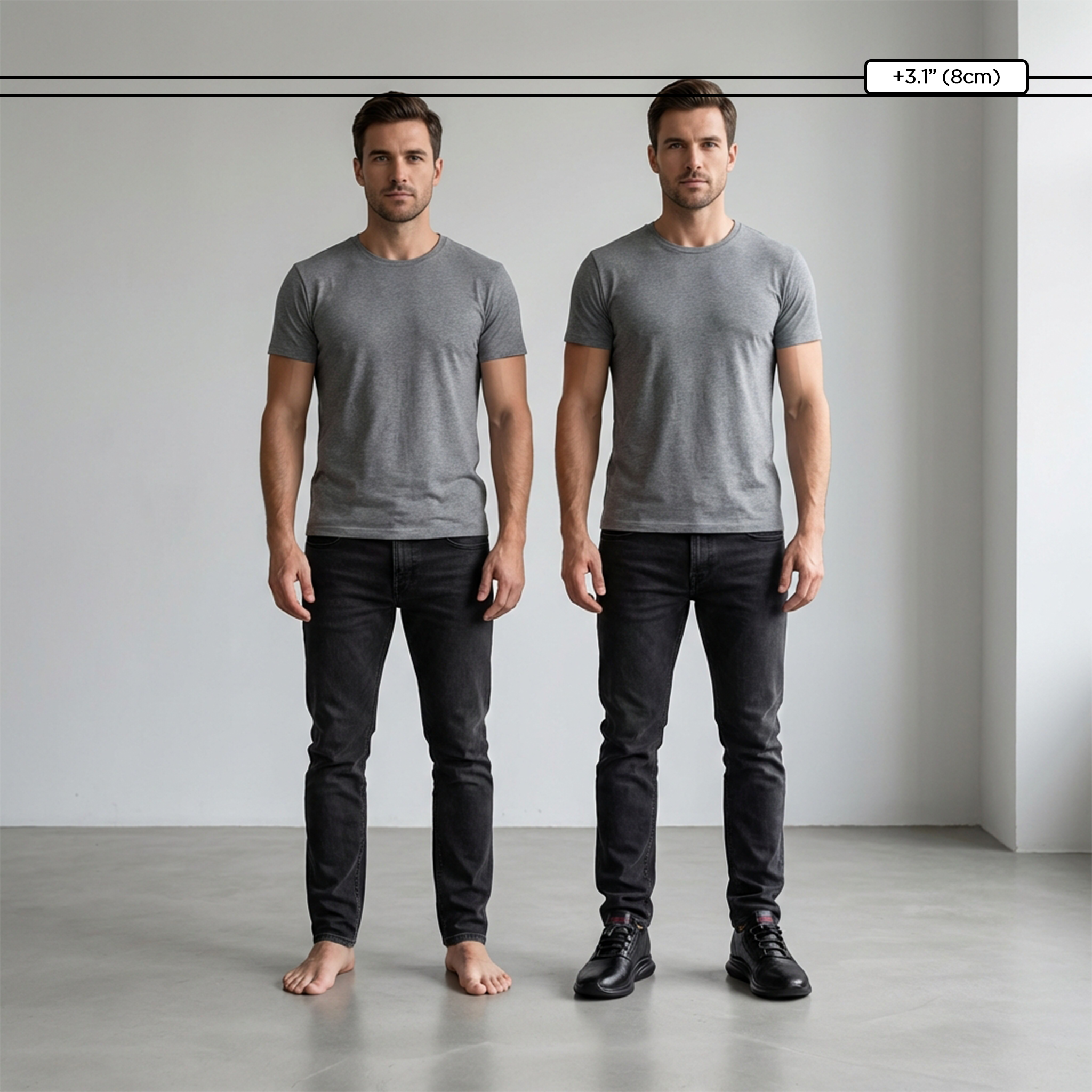 Profitez d'un gain de taille discret allant jusqu'à 8 cm . Ce gain est totalement invisible : vous seul le remarquerez .