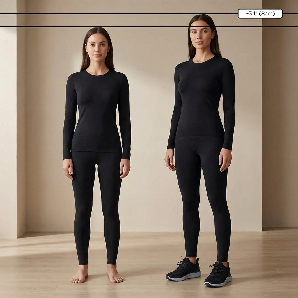 Que ce soit en réunion ou en ville, gagner légèrement en stature peut faire toute la différence. Marchez plus droit, gagnez en confiance et déplacez-vous avec aisance tout au long de la journée.
