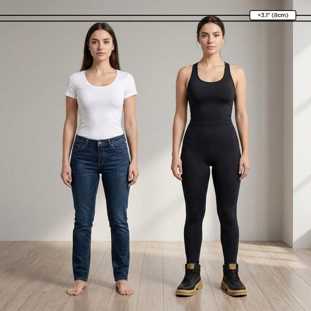 Que ce soit en réunion ou en ville, gagner légèrement en stature peut faire toute la différence. Marchez plus droit, gagnez en confiance et déplacez-vous avec aisance tout au long de la journée.