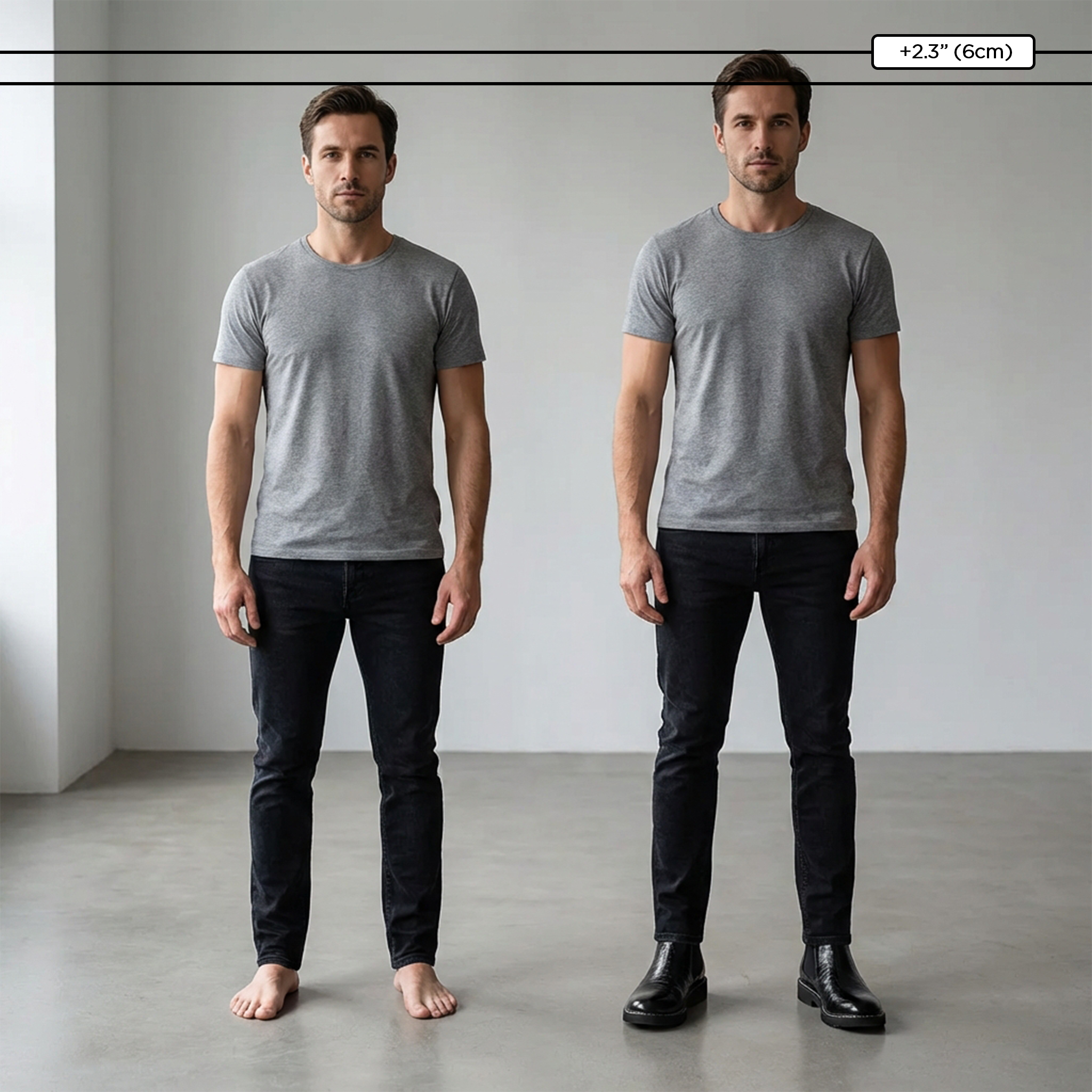 Profitez d'un gain de taille discret allant jusqu'à 8 cm . Ce gain est totalement invisible : vous seul le remarquerez .