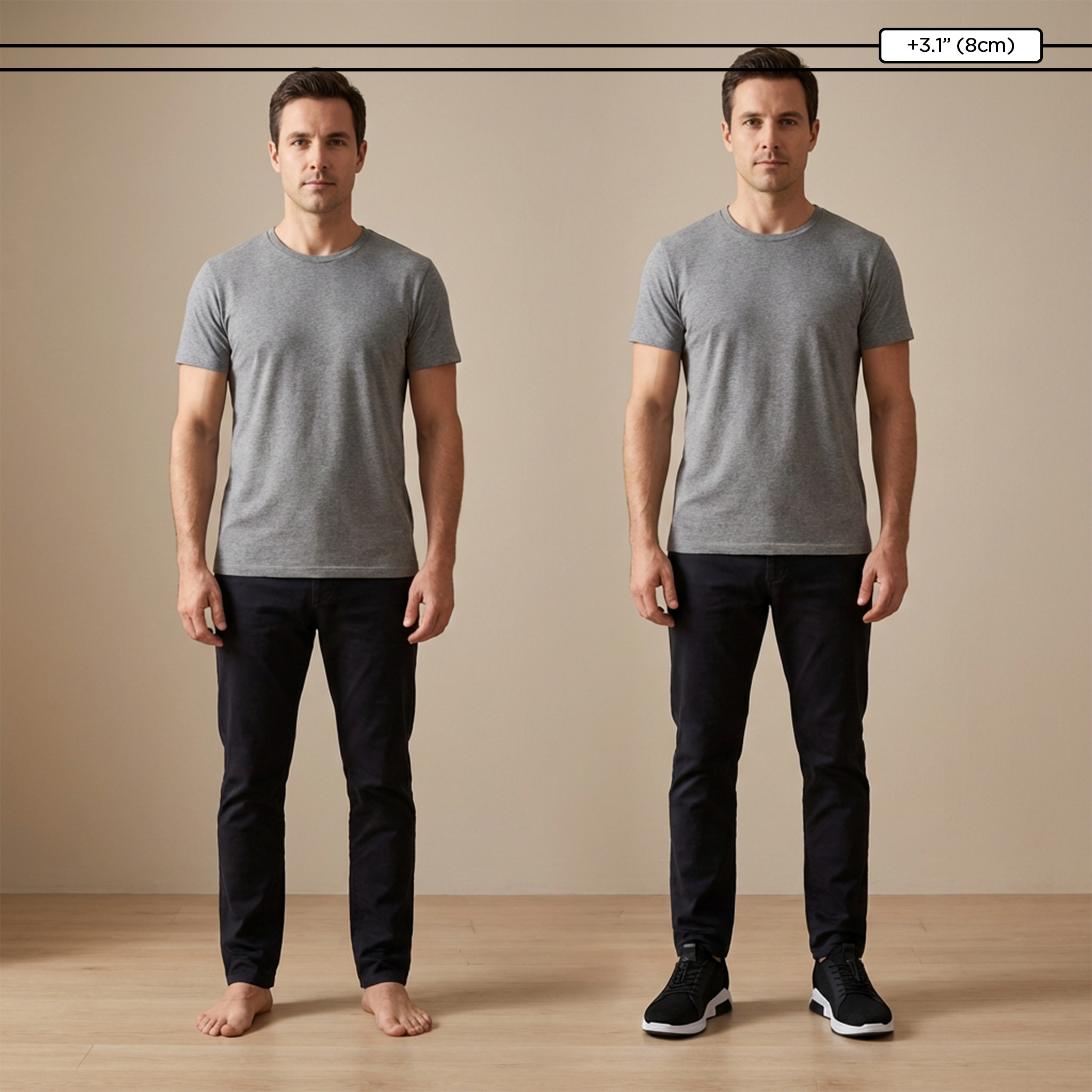 Ob im Meeting oder beim Ausgehen - eine dezente Größenerhöhung kann einen großen Unterschied machen. Gehen Sie aufrechter, fühlen Sie sich sicherer und bewegen Sie sich mühelos durch den Tag.